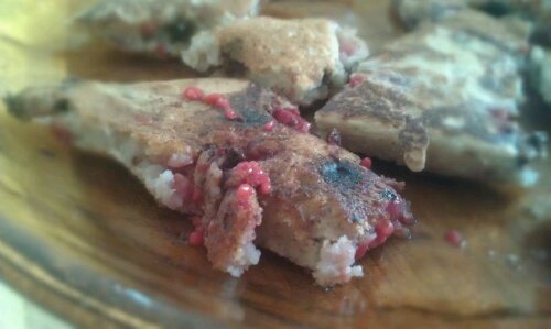 Granola is homemade from raw old fashioned oats, pecan meal, flax seeds, chia seeds, date paste, cinnamon, nutmeg, cloves, and ginger. Dehydrated for 12 hours.