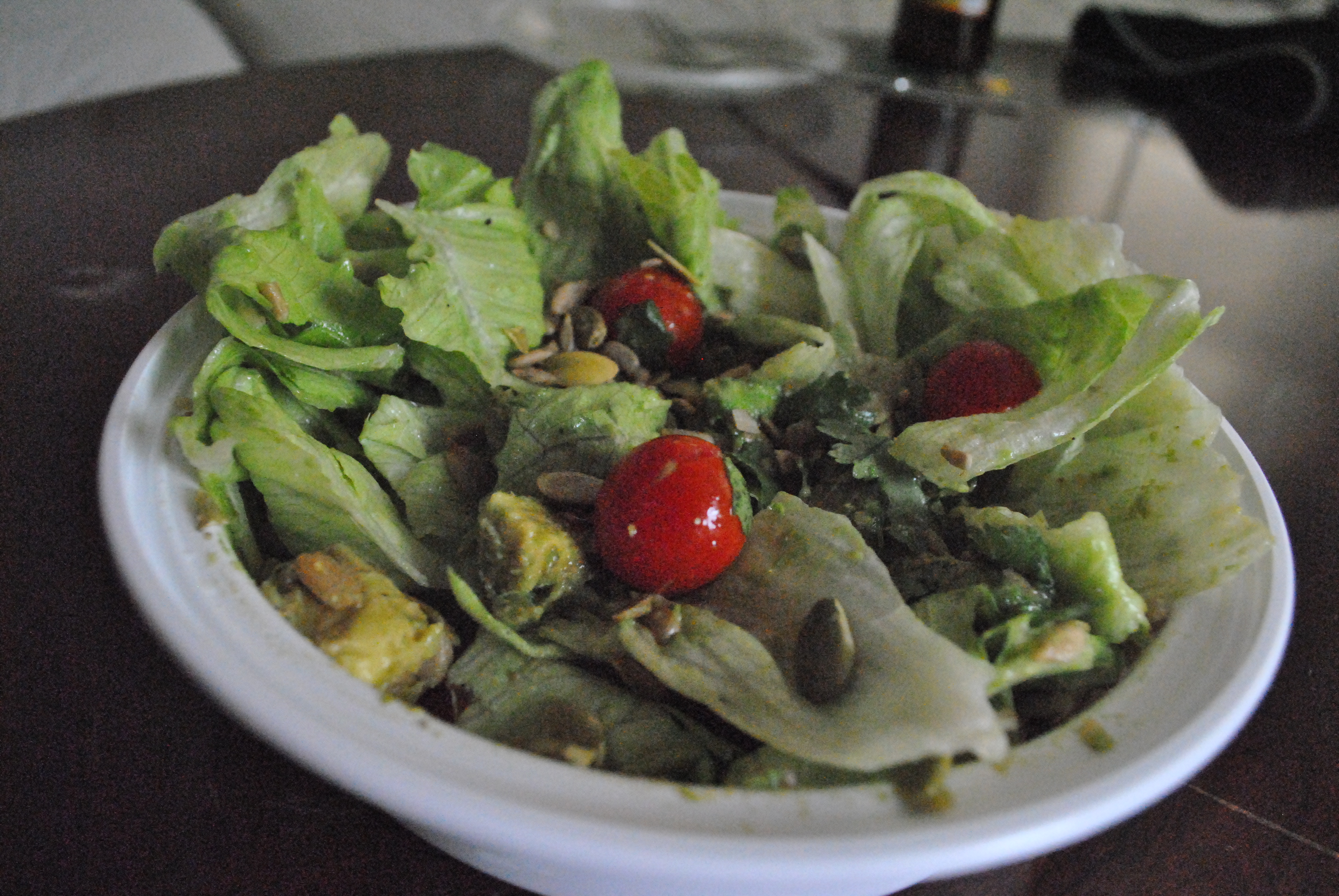 Lettuce, tomatoes, avocado, cilantro, garlic, sea salt, pumpkin seeds, sunflower seeds, lime juice